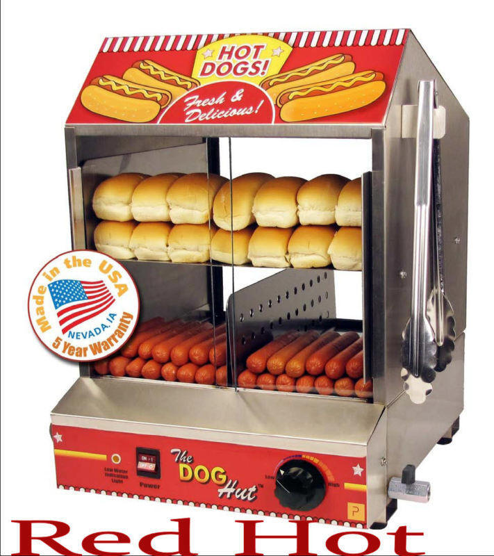 The Dog Hut! Daily Rental: $55.00 with Bouncer Rental... $75.00 without Bouncer Rental (Hot dogs and buns are not included). Free delivery with bouncer. This is a great addition to any event or party. Simple to use and simple to clean up. Keeps the food line moving along and hungry people are happy people. This holds several dozen dogs & buns. Plug in to a 110 and place on sturdy surface. This will take 20 to 40 minutes to have eat-ready dogs! Just add cheese, chili or your favorite condiments! |